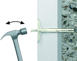 Bateți cuiul în diblu până când se fixează și ajunge la același nivel cu materialul de izolație.